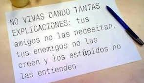 Las aclaraciones, justificaciones no las necesitan tus amigos, no las creen tus enemigos y no las entienden los estúpidos, así que no pierdas tiempo y vive tu vida, dándote explicaciones sólo a tí mismo, es al único que le importa lo que haces y como lo haces.