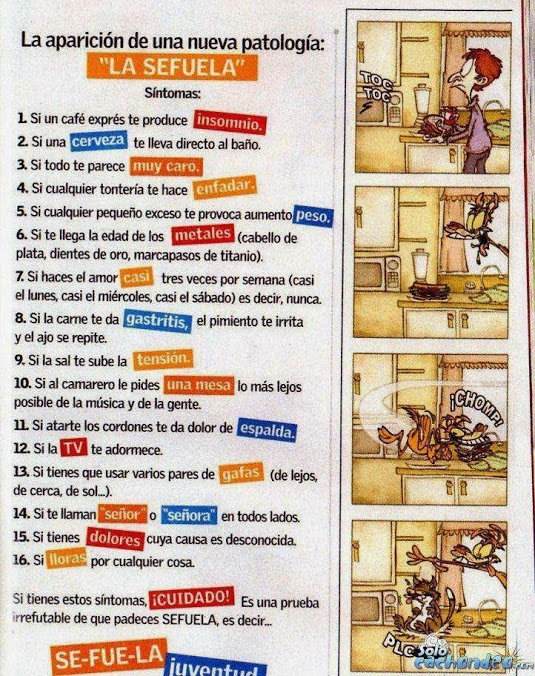 Hoy me he encontrado esta «nueva patología» que nos afecta a partir de los cuarenta y tantos, y por supuesto estoy afectada por ella. Habrá que buscar un remedio…. pero si cuarenta, es la vejez de la juventud, cincuenta, es la juventud de la vejez, por lo tanto empiezo mi nueva juventud. ¡Es estupendo haberme dado cuenta a tiempo!