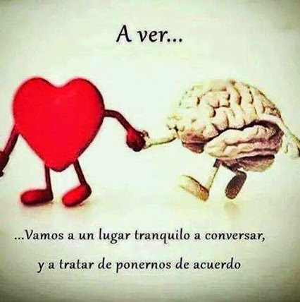 Intentemos, aunque sé que no es fácil, que la convivencia entre corazón y razón sea excelente y no permitamos que ninguno de los dos se salga con la suya, pues si no trabajan juntos nos harán tener reacciones desmesuradas y fuera de control y eso no es bueno ni para nosotros ni para los demás. Es un juego de «parar y empujar», hasta llegar al lugar en el que se encuentren. Ese, es el ideal.