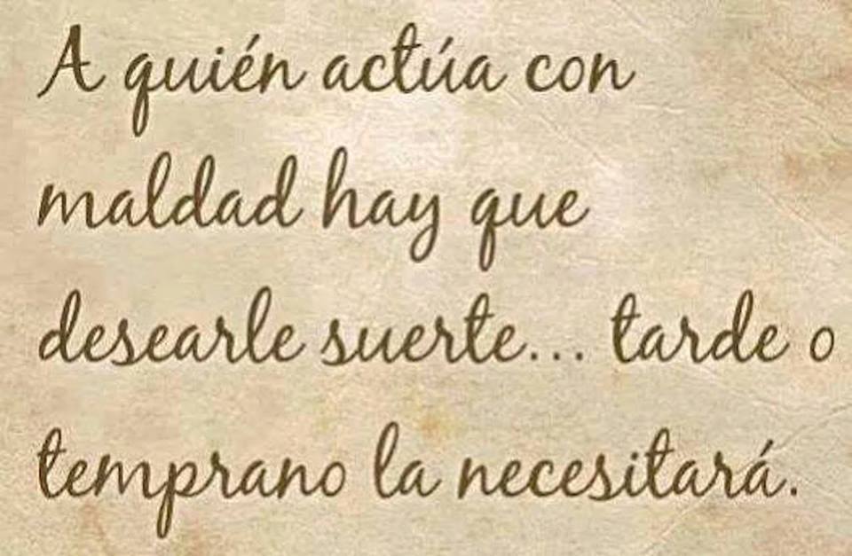 ¡Encima, desear suerte a los malvados! Que difícil de llevar a cabo y cuánto cuesta creer que la puedan necesitar. Pues mirad, creo que acierta esta frase. Siempre he pensado que «ser malo y desear el mal, es como tomar veneno creyendo que matas a tu enemigo y al final sólo te mueres tú».
