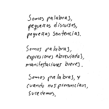 Las palabras somos nosotros, nuestras vivencias, nuestras ideas, nuestros pensamientos. Con ellas podemos manifestarnos, ser, expresar, querer, odiar, soñar… en una palabra, VIVIR y cuando las pronunciamos las cosas suceden, adquieren forma y sentido.